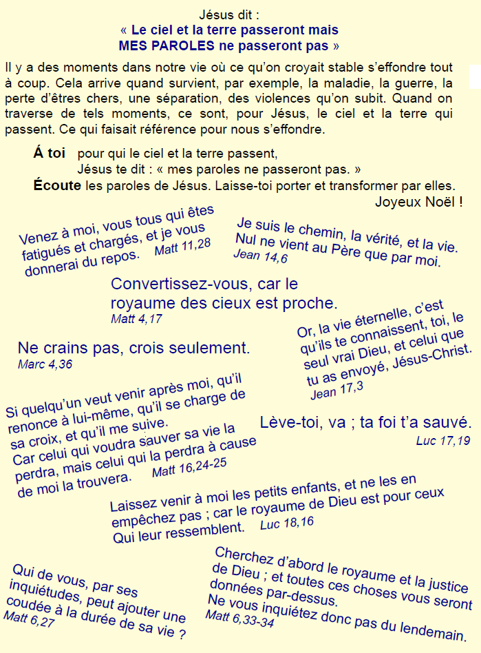 (Je vous invite de lire les versets de la Bible qui sont proposés)